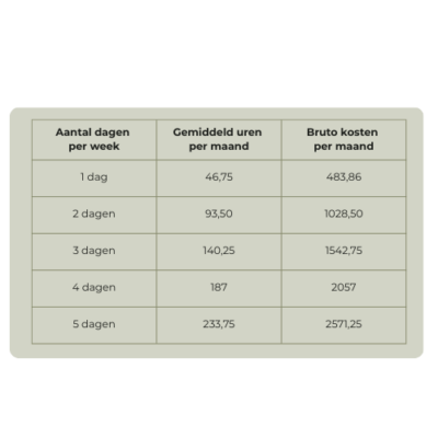 Zo ontstaat er een vast maandbedrag, dat we in gelijke delen factureren. Wel zo overzichtelijk, en je weet precies waar je aan toe bent — ook in maanden met vakanties of feestdagen.